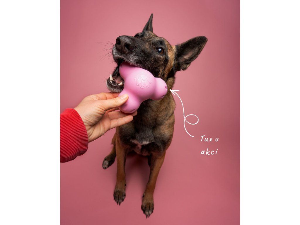 Můžeš do něj schovat suché pamlsky, naplnit ho paštikou, jogurtem nebo masem a klidně i zamrazit – vznikne „Tuxicle“, zábava na dlouhé minuty (a často i desítky minut).