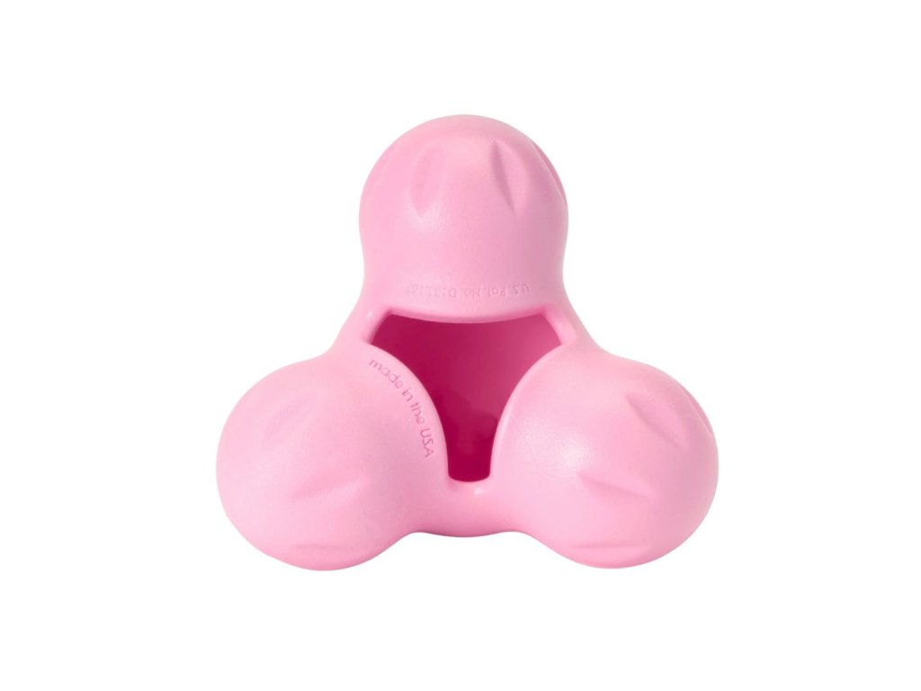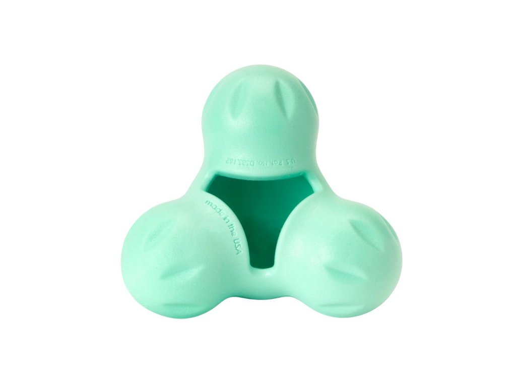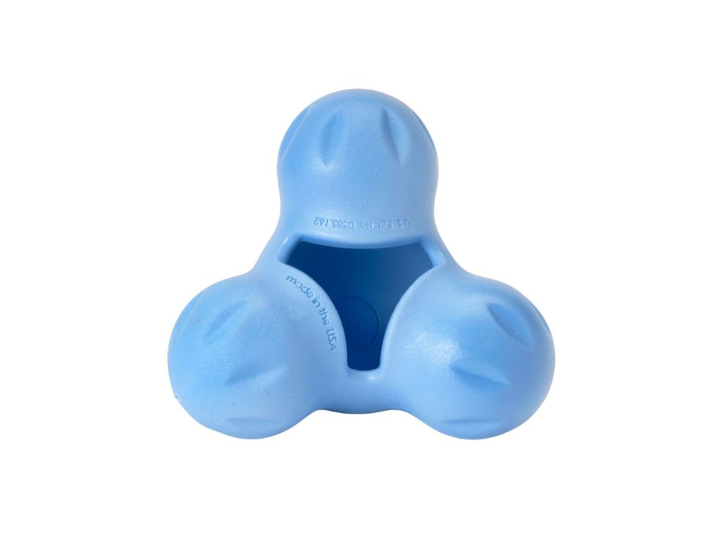 Můžeš do něj schovat suché pamlsky, naplnit ho paštikou, jogurtem nebo masem a klidně i zamrazit – vznikne „Tuxicle“, zábava na dlouhé minuty (a často i desítky minut).