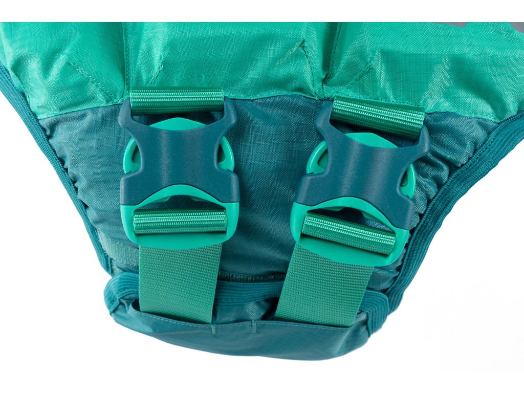 Kromě jednoho připojovacího bodu vodítka na zadní straně jsou na boku záchranné vesty dva připojovací body, které umožňují nastavit směr a odpor. Tato funkce je užitečná zejména pro rehabilitační účely na vodním běžeckém pásu nebo v bazénu. Drobnosti lze uložit do zadní kapsy.