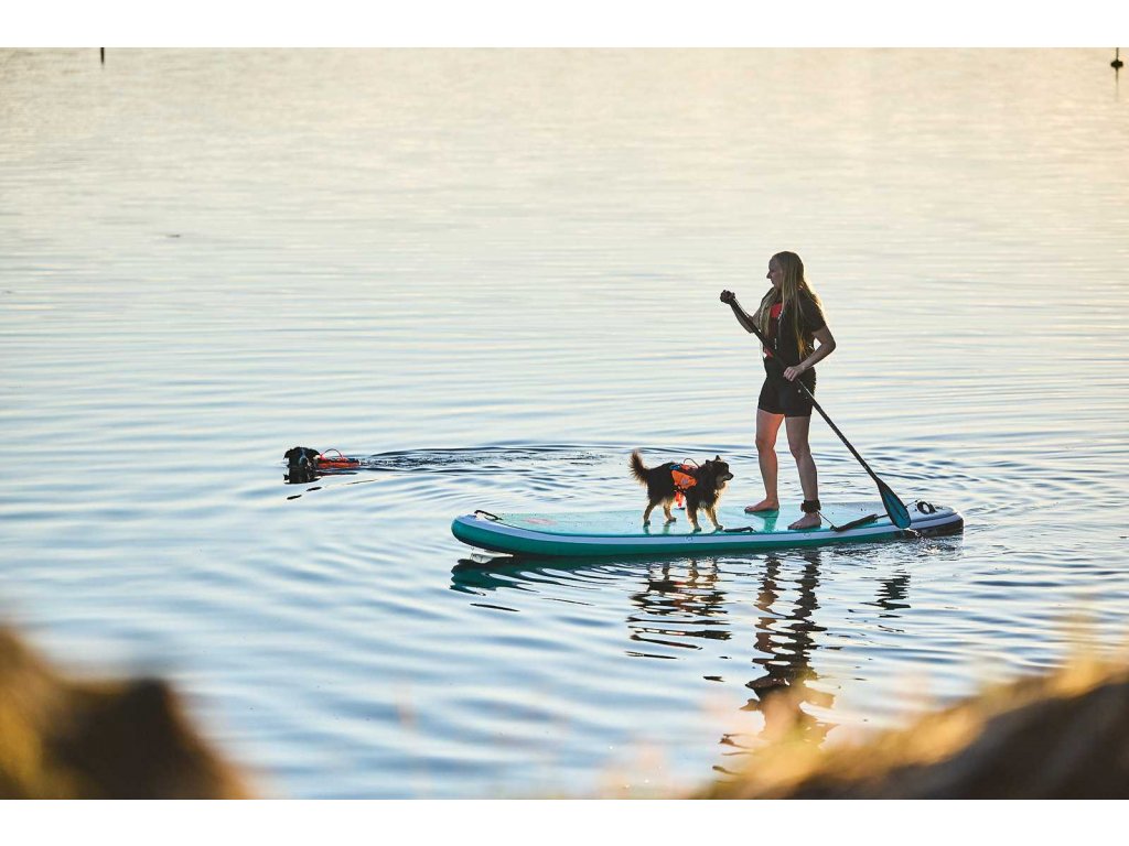 Záchranná vesta je vybavena pevným madlem pro případ, že byste psa potřebovali zvednout na paddleboard, dok nebo do člunu.